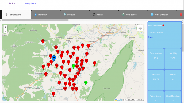 Dashboard แสดงข้อมูลสภาพอากาศจากสถานีวัดสภาพอากาศ ฝุ่น และคาร์บอนอัจฉริยะ และdashboard แสดง HandySense ระบบเกษตรแม่นยำ ฟาร์มอัจฉริยะ ที่ได้ข้อมูลจาก IoT ที่ใช้สำหรับตรวจวัดและควบคุมสภาพแวดล้อมในแปลงเพาะปลูก