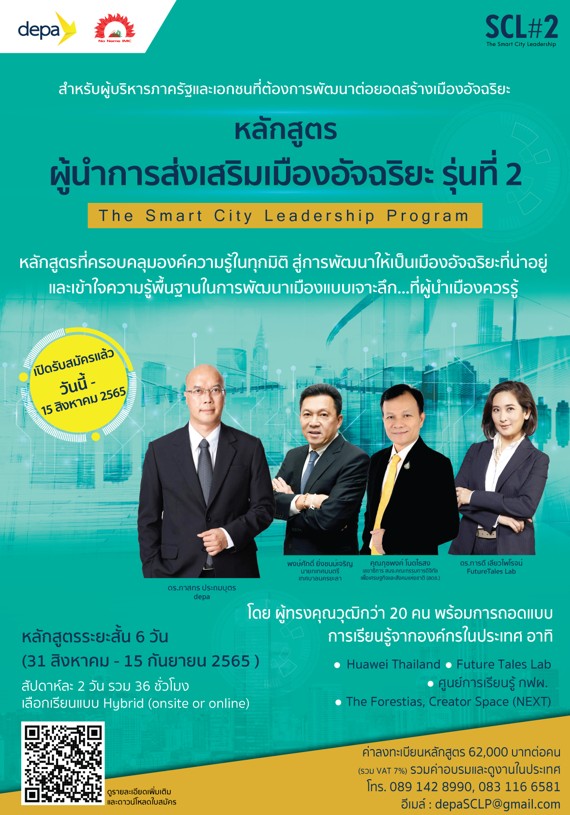 - Digital Economy Promotion Agency (depa), an agency under the Ministry of Digital Economy and Society Together with Noname IMC Company Limited, we organized a training course for leaders in promoting smart cities (Smart City Leadership Program: SCL), Class 6. The course content covers guidelines for creating livable smart city projects. Application of digital technology in all dimensions, both public and private sectors including driving the development of smart cities.